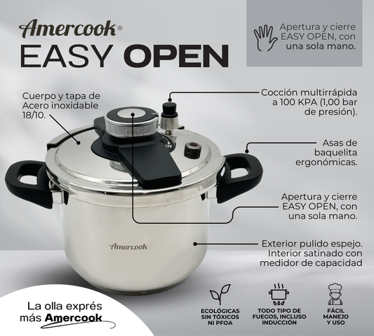Olla exprés Easy Open con sistema de apertura fácil con una mano