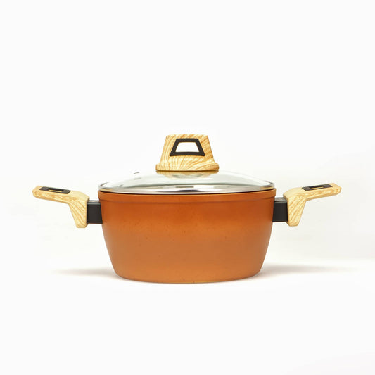 Cacerola con tapa Terracotta acabado polvo de piedra. Apta para todo tipo de cocinas, incluso inducción