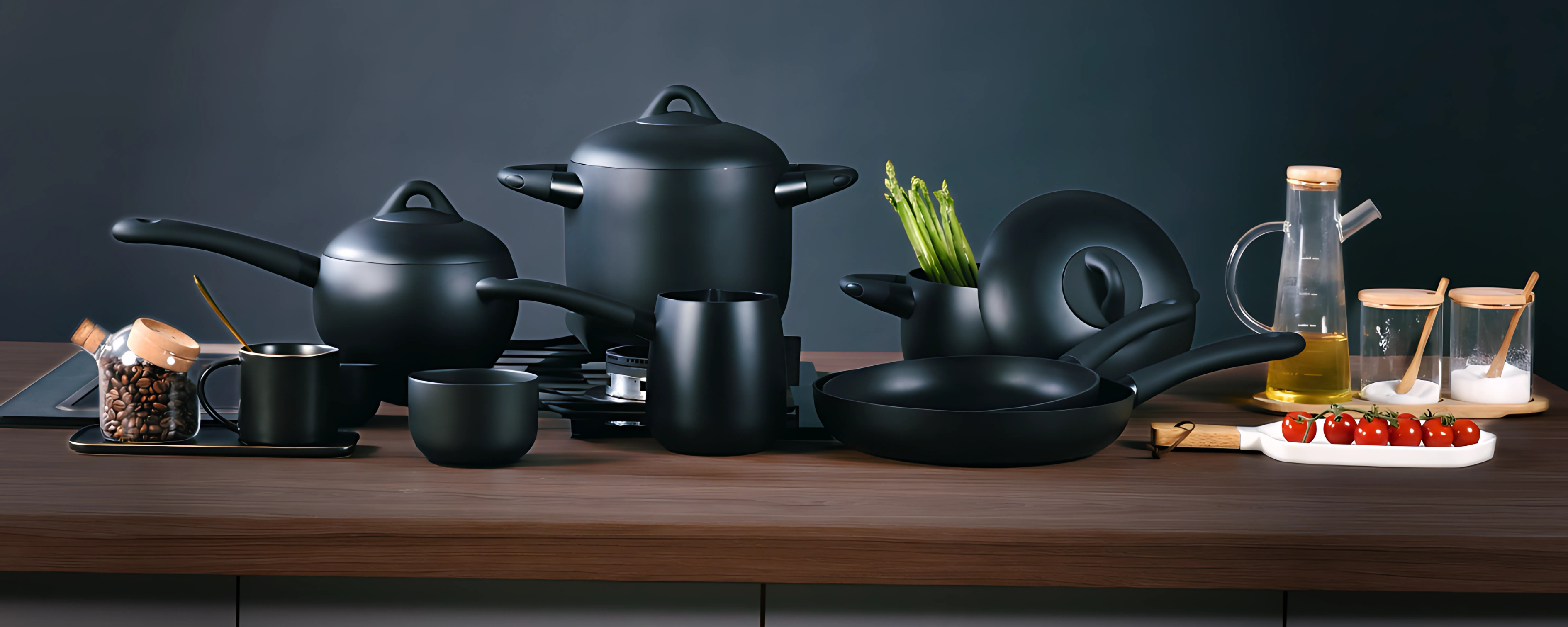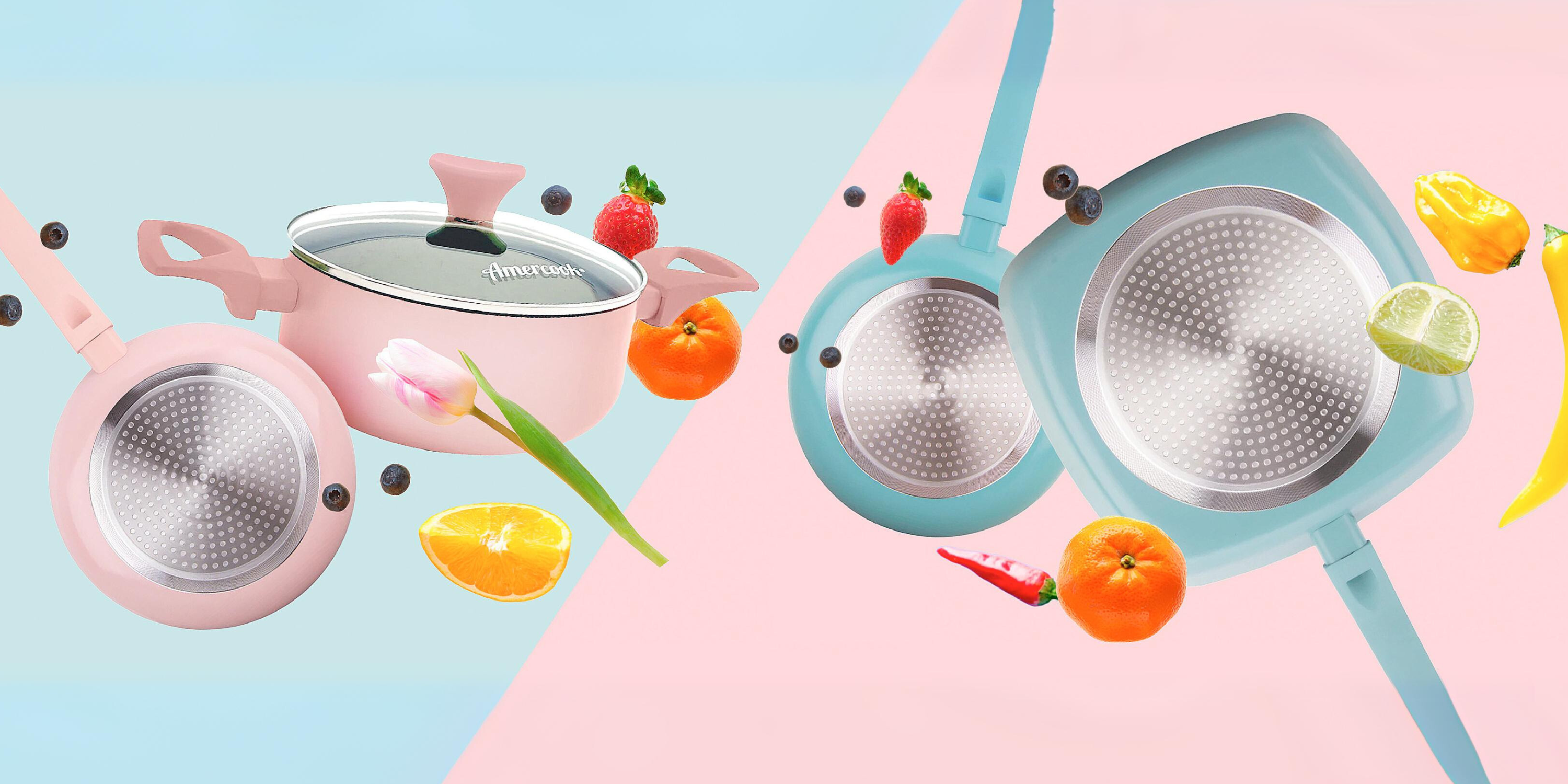 Batería de cocina de aluminio EasyClick de 8 piezas y mango extraíble de color rosa pastel