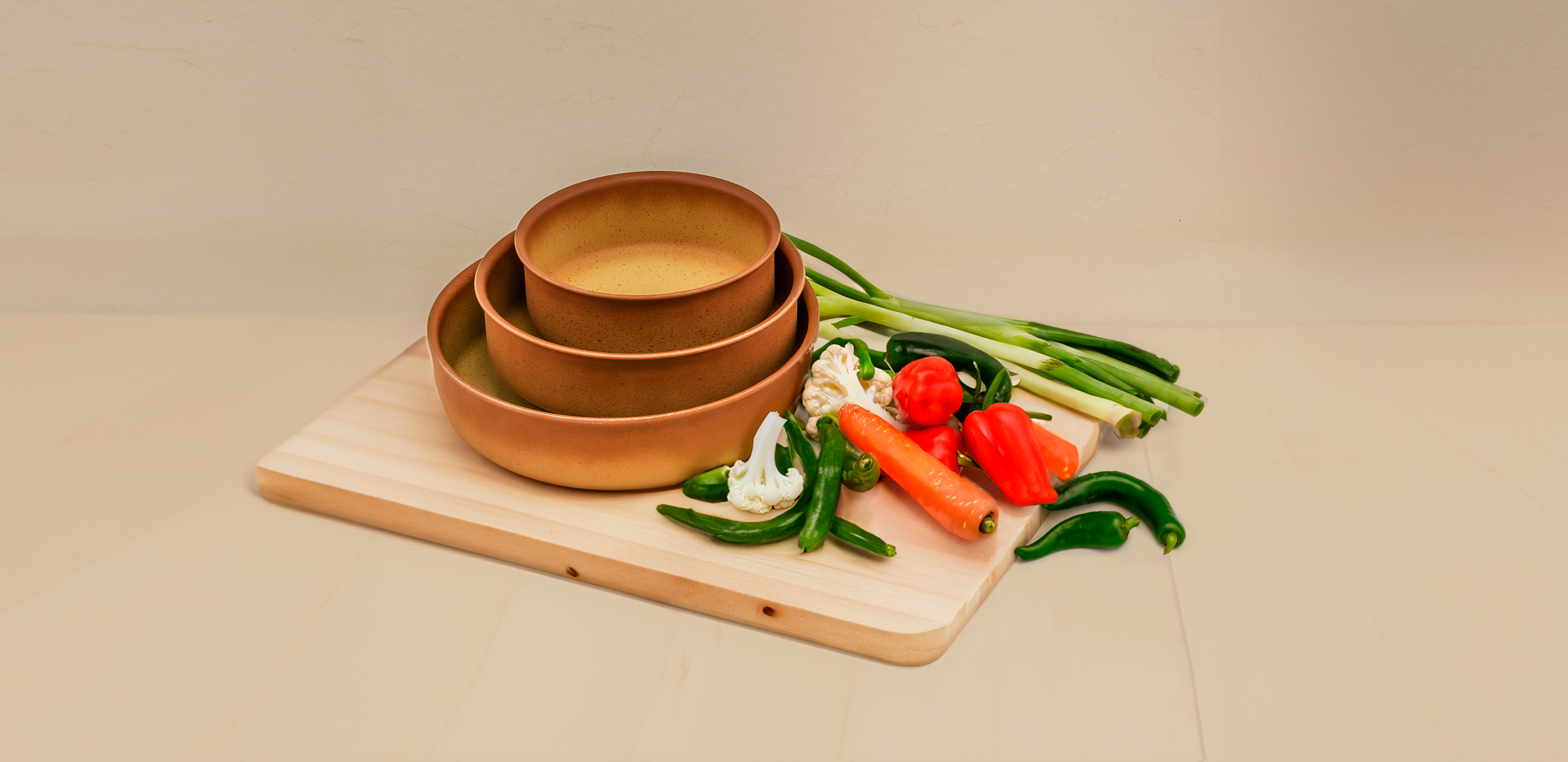 Wok Terracotta acabado polvo de piedra. Apta para todo tipo de cocinas, incluso inducción