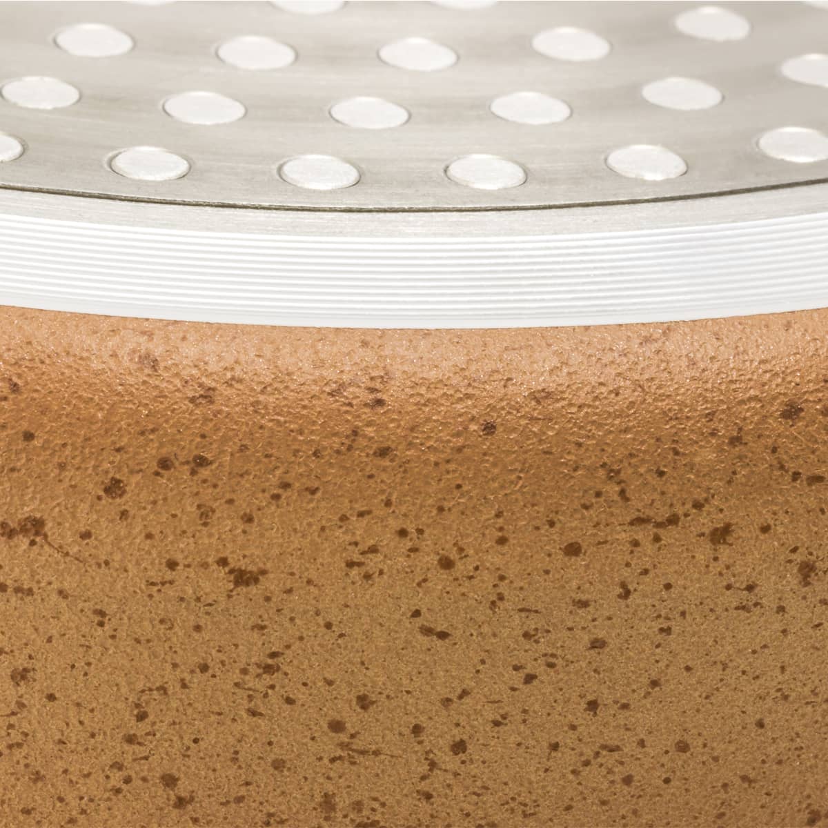 Su recubrimiento antiadherente endurecido con polvo de piedra, reforzado con cinco capas, mantiene intactas las propiedades del producto durante más tiempo, alargando su vida y mejorando sus resultados.
